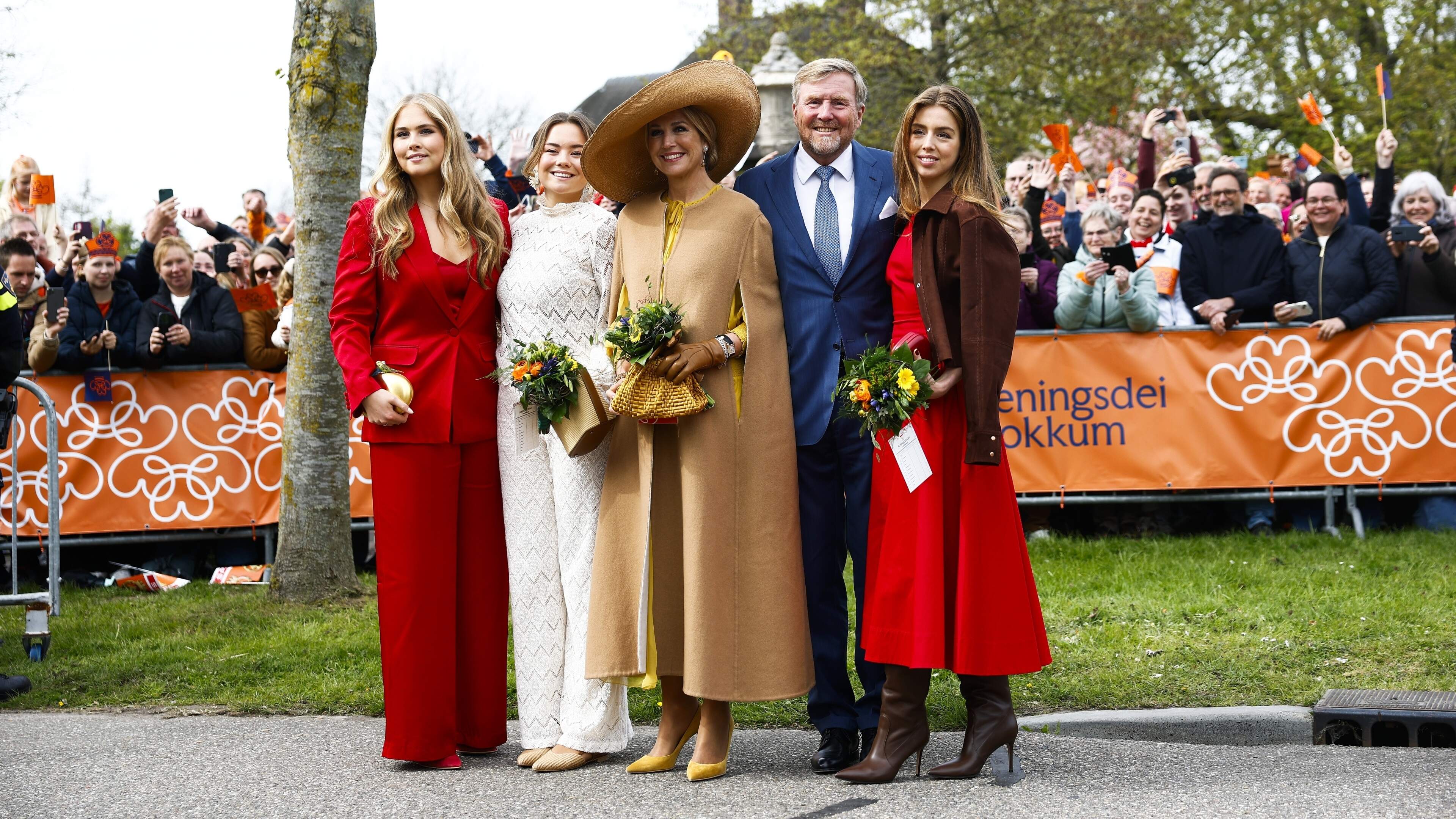 Koningin Máxima en haar drie dochters zetten ook dit jaar op Koningsdag weer een fleurig en zomers plaatje neer in Dokkum met een mooi kleurenpalet. Ze hebben dit jaar duidelijk gekozen voor ’flagdressing’ namelijk samen met het blauwe pak van Willem-Alexander als ode aan de kleuren van de Dokkumse vlag.