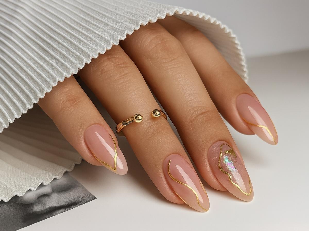 Золотые акценты делают нюдовый маникюр популярным — стилист София Алвес