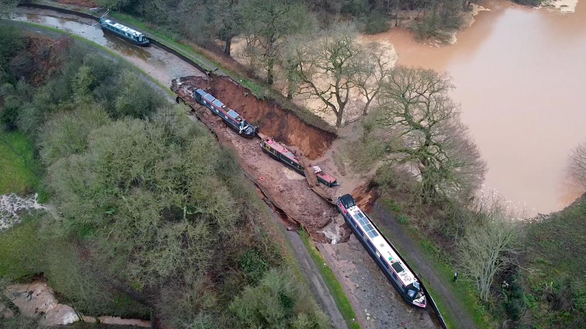 Major incident declared as sinkhole drains canal and swallows narrowboats